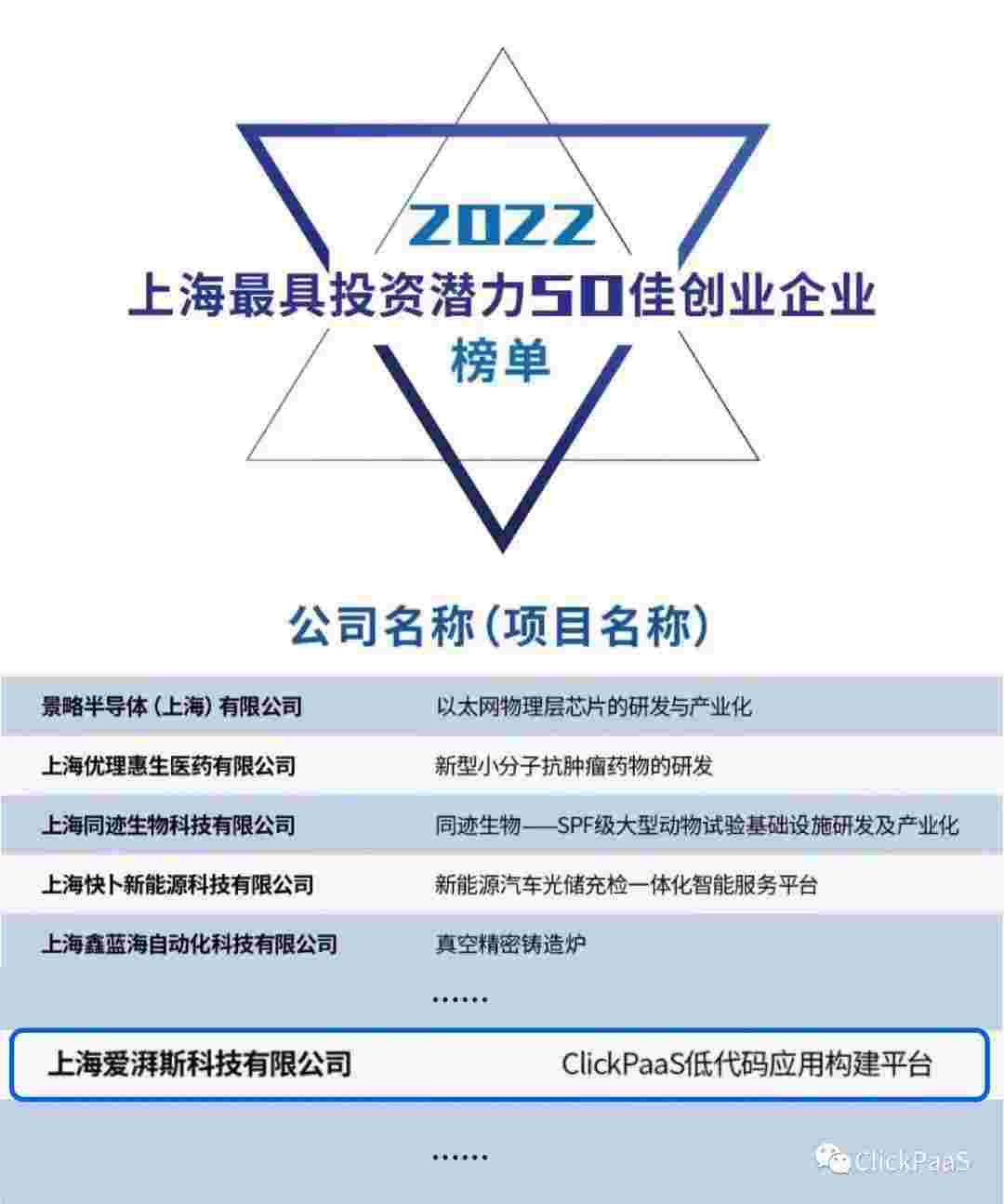 圆梦钱包 作为国内低代码PaaS平台的领军企业,,,,与120家创企入围角逐。。。期间接受了来自德同资本、、、、领中资本等知名投资机构的10位投资人组成专家评委团的背靠背盲选。。。。并最终入围“2022上海最具投资潜力50佳创业企业”榜单,,,被列入“上海市重点培育创业企业库”。。。。