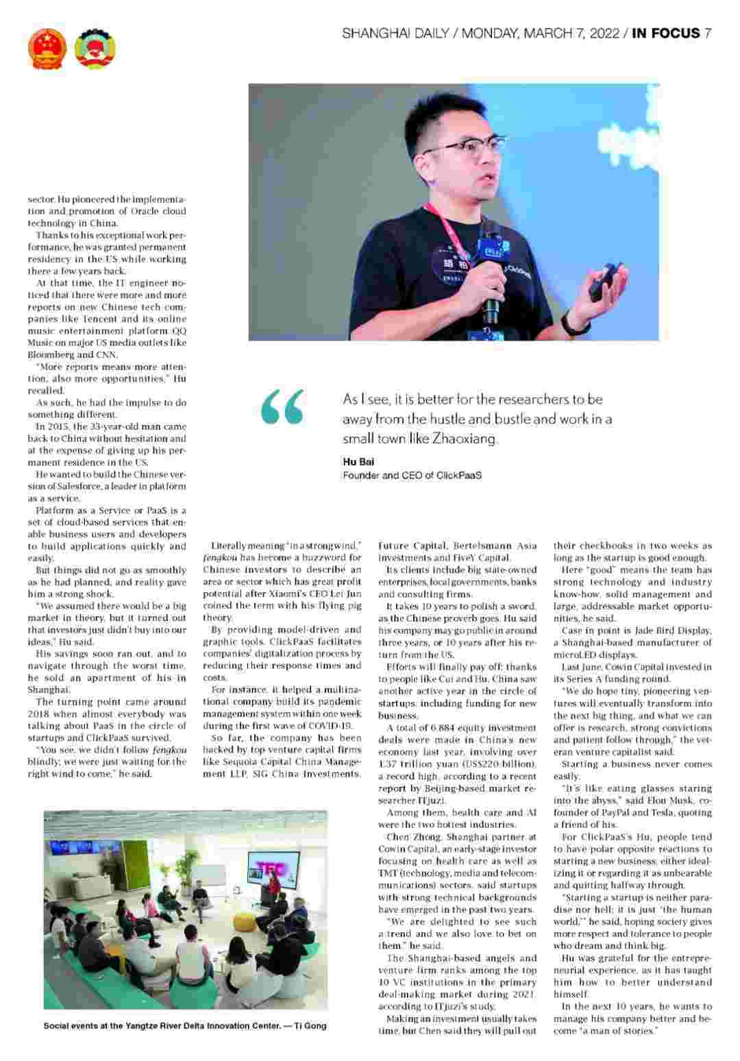 《上海日报》专访圆梦钱包创始人、、、CEO胡柏,,,,探究其创业背后的故事!!!!